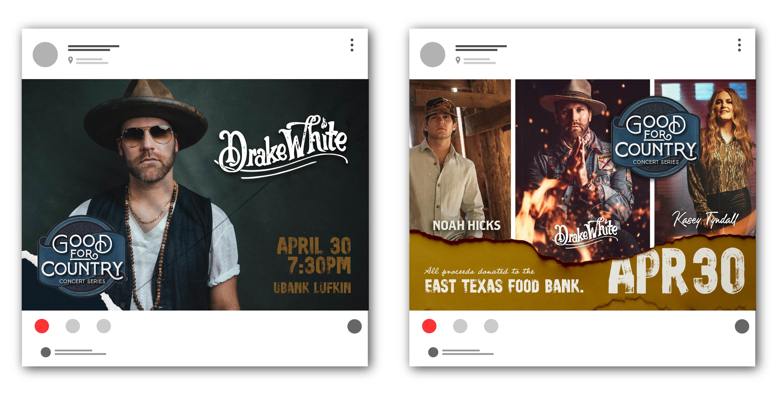 Leveraging social media advertising is a key part of promoting the Good For Country concert. By targeting ads in local counties around Lufkin, we were able to drive traffic to ticket sales.